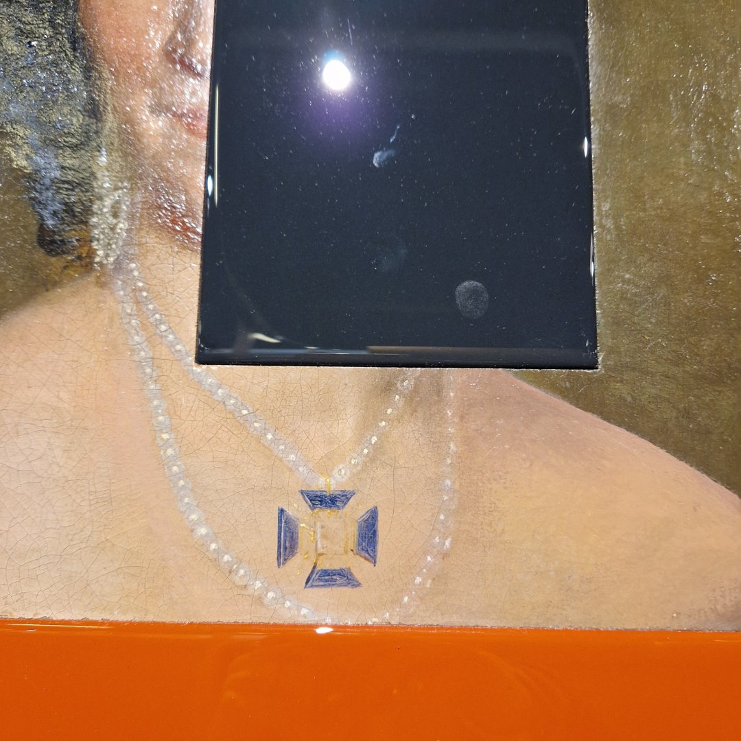 Проте, якби на портреті була більша каблучка, а не підвіска, а тільки перли, то це саме так я зараз бачу Орландо-жінку.
