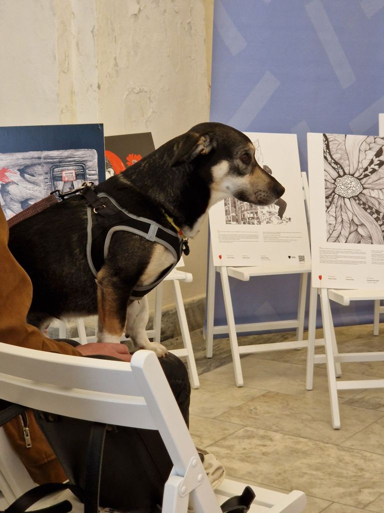 Однак на території продавали каву без кофеїну, і протягом дня я випила три порції. До речі, на тій лекції був чоловік із собакою, який хотіла спати. Він сидів біля господаря та іноді дрімала. Це було дуже мило.