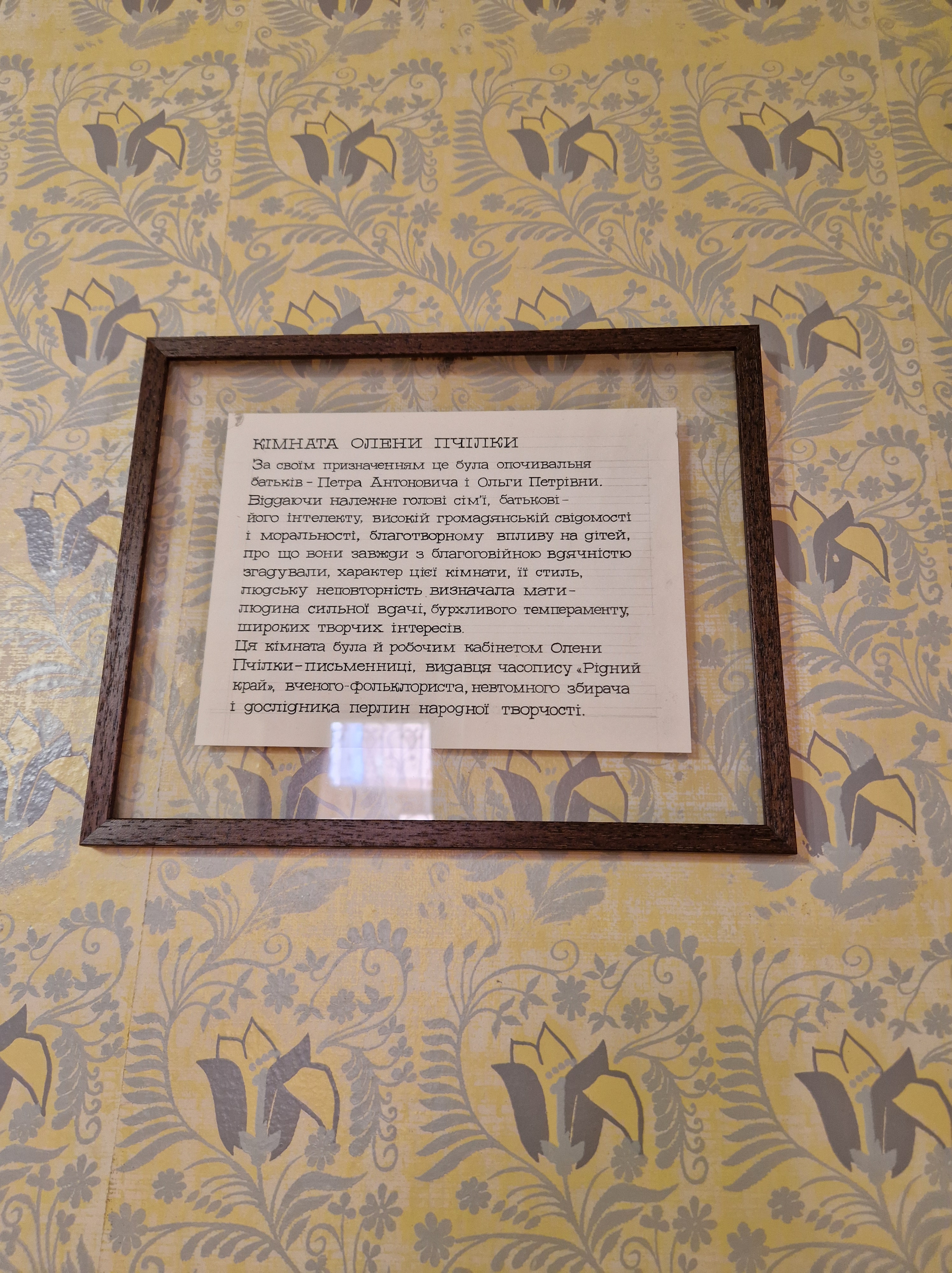 Під час екскурсії ви можете побачити особисті речі Лесі Українки, рукописи та фотографії. Інтер’єр — неймовірний і був відтворений на основі листів сестри Лесі Українки — Ізидори. Вона описала кожну кімнату, надіслала плани, фотографії інтер’єрів. До речі, шпалери всюди зроблені на спецзамовлення, колір візерунок були відновлені.